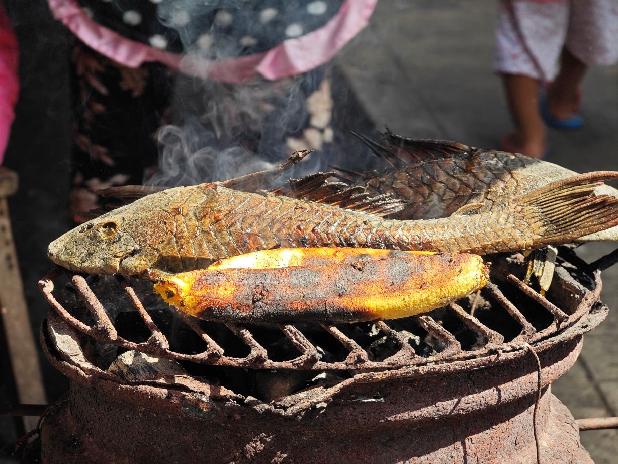 Die Plecos lagen einfach so auf dem Grill, bei einem anderen Stand lagen sie teils noch zuckend auf dem Tisch und wurden nacheinander ausgenommen. Gelebt haben hier nur Bakterien und Keime, weshalb uns zu Beginn schon gesagt wurde, wir sollten dort nichts Offenes kaufen oder probieren.
