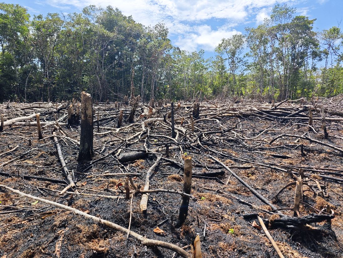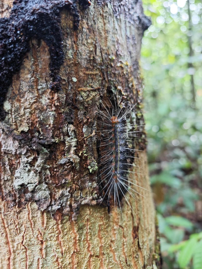 Wieder starteten wir über die einheimische Grabstätte, und durch den Regen, wurde es eine absolut matschige und nasse Angelegenheit. Doch auch wie Nachts, war es hier eher ruhig. Entdeckt haben wir einen tollen klaren Schwarzwasserbach, ein eher optisch verlassenes Haus mit vielen Aquarien, Raupen, Schmetterlinge und ein abgebranntes Stück Urwald, mit Munitionsresten.