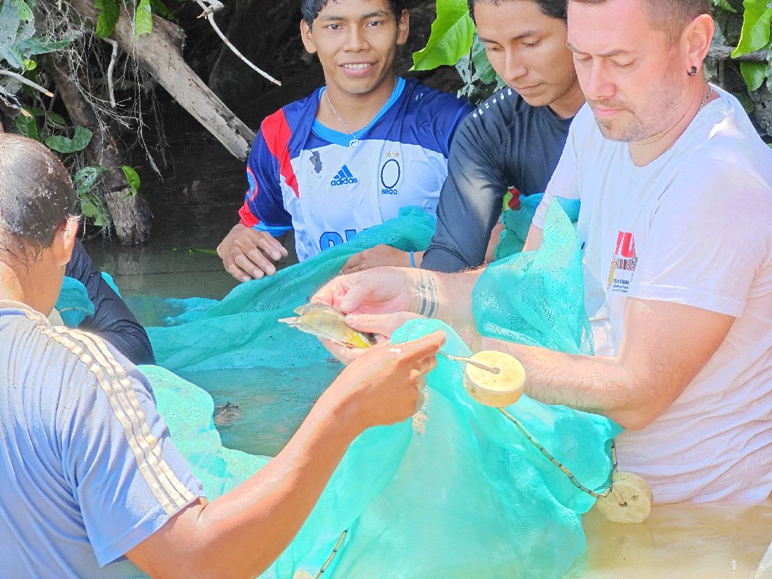 Einheimische hatten für uns einige natürliche Verstecke geschaffen, damit sich dort Diskus und Skalare sammeln, welche wir dann fangen konnten. Während Skalare im Rio Nanay heimisch sind, wurde uns mitgeteilt, dass die Diskus hier eigentlich nicht hingehören und es dazu die verschiedensten Theorien gibt, wie die Tiere in den Fluss kamen. Dennoch haben wir Diskus fangen können, welche eine tolle Farbe und Zeichnung hatten. Zusätzlich ging uns noch ein hübscher Apistogramma ins Netz sowie viele Salmler und ein Wels (Trachelyopterus).