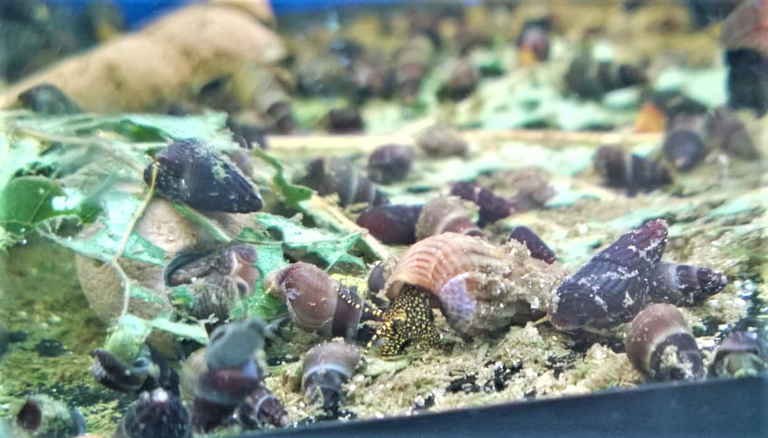Die Sulawesi Felsenschnecken sind absolut friedliche Schnecken und können mit anderen friedlichen Tieren wie Fischen, Garnelen und Welsen vergesellschaftet werden.