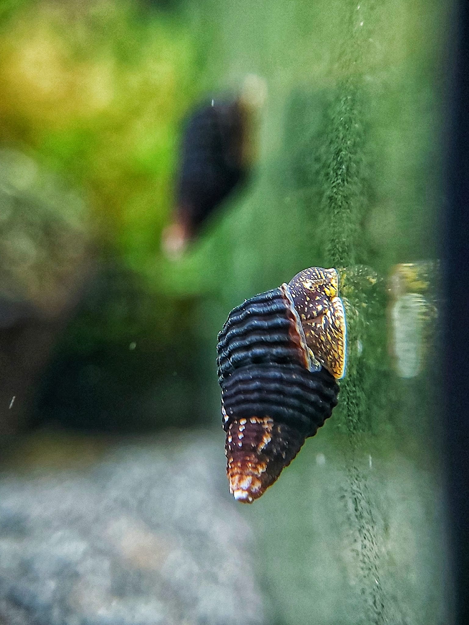 Bei der Einrichtung des Aquariums für die Felsenschnecke in all ihren Farbvarriationen, solltet ihr unbedingt auf feinen Bodengrund achten und keine zu schmalen Spalten einbauen. Da sie ein sehr langes Gehäuse bekommen und sich auch gern mal fallen lassen, kann es sonst passieren, dass sie sich in solchen Spalten verkeilen und nicht mehr von allein herauskommen.